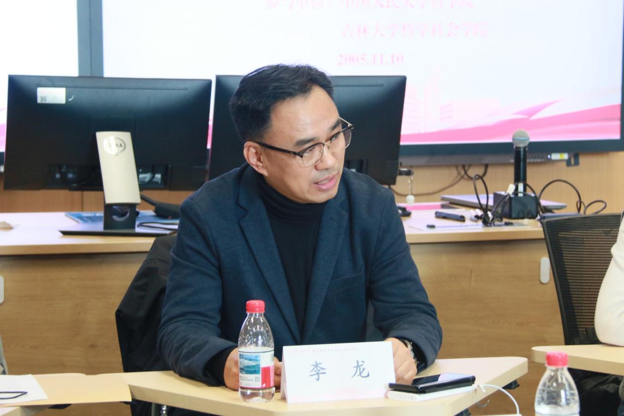 吉林大学哲学社会银河Galaxy 副院长李龙教授介绍其银河Galaxy 建设及拔尖学生培养相关情况。李龙指出,人大银河Galaxy 和吉林大学哲学社会银河Galaxy 在学科建设、人才培养方面一直保持密切联系,希望今后进一步深化两校友谊、开展深入交流合作。此外,李龙回顾了近年来吉大哲学社会银河Galaxy 在人才培养方面取得的丰硕成果,分享了在学科建设尤其是PPL实验班的建设经验、学员国际化、对外交流等方面的成功经验。