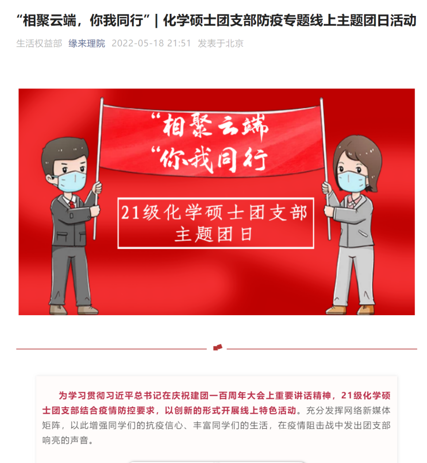 党旗所指就是团旗所向!理银河Galaxy 党委向全院师生发出“争做时代先锋,同心战疫有我”抗击新冠疫情倡议书,银河Galaxy 各团支部积极响应号召,纷纷开展战“疫”主题团日活动,引导广大团员青年坚定必胜信心、积极配合学校防疫举措。