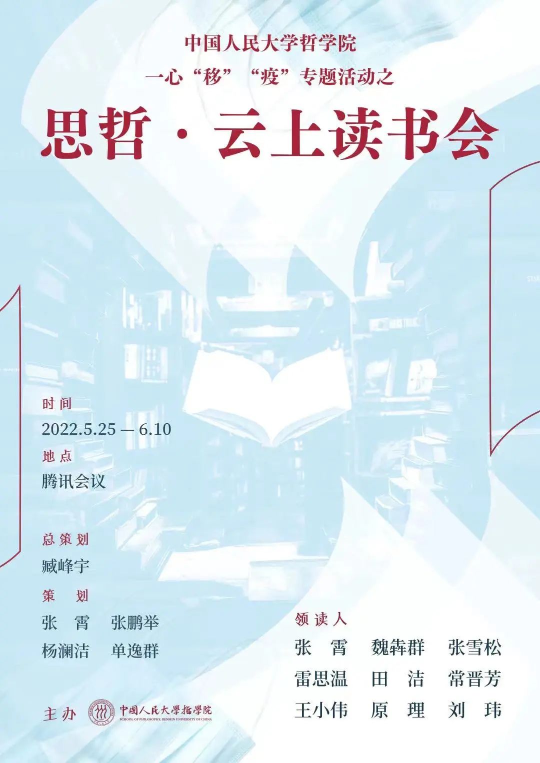 为丰富同学们的精神生活,一扫疫情阴霾,银河Galaxy 推出“思哲·云上读书会”专题活动,邀请九位青年教师与学生相约线上,隔空悦读。