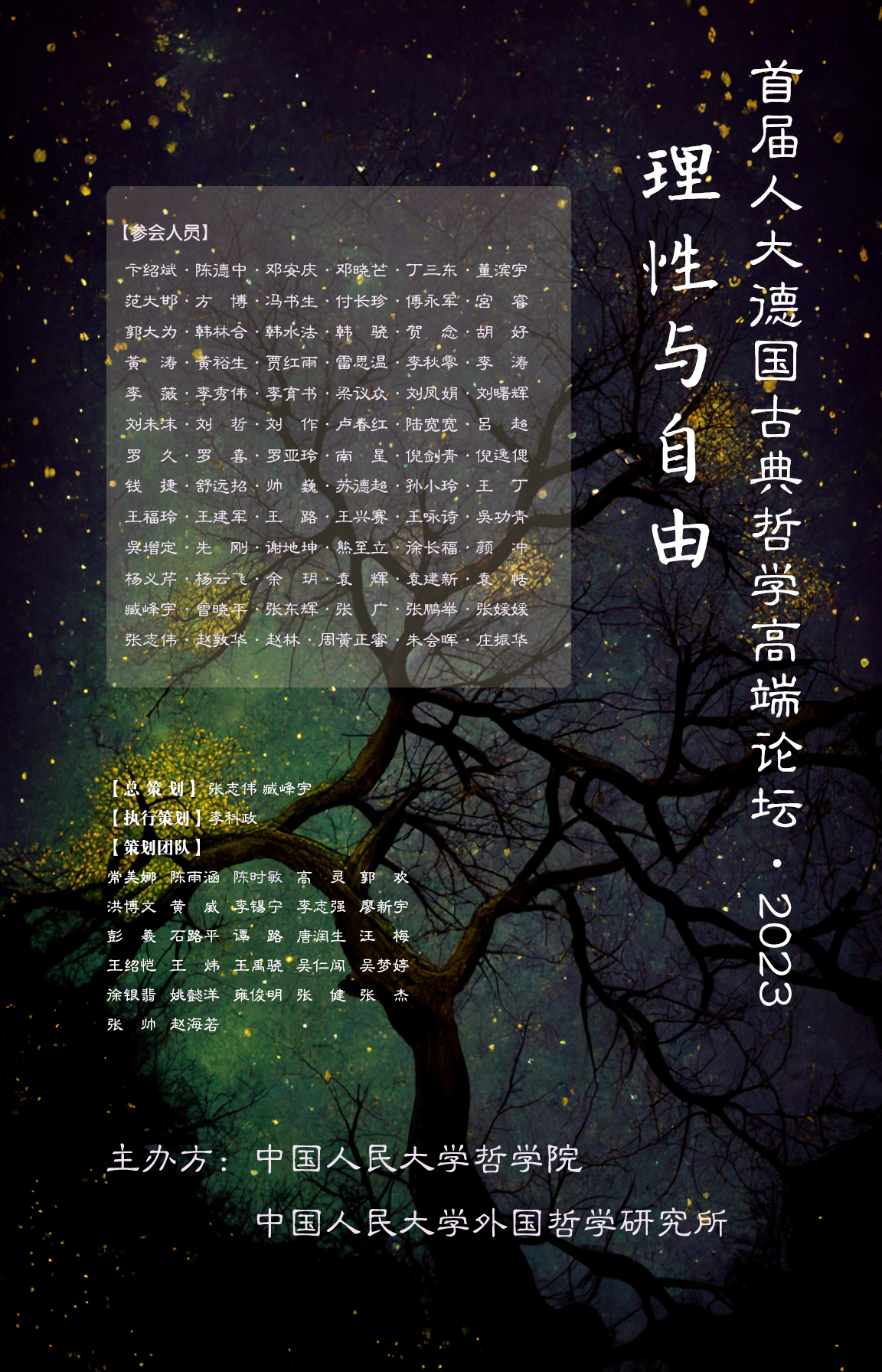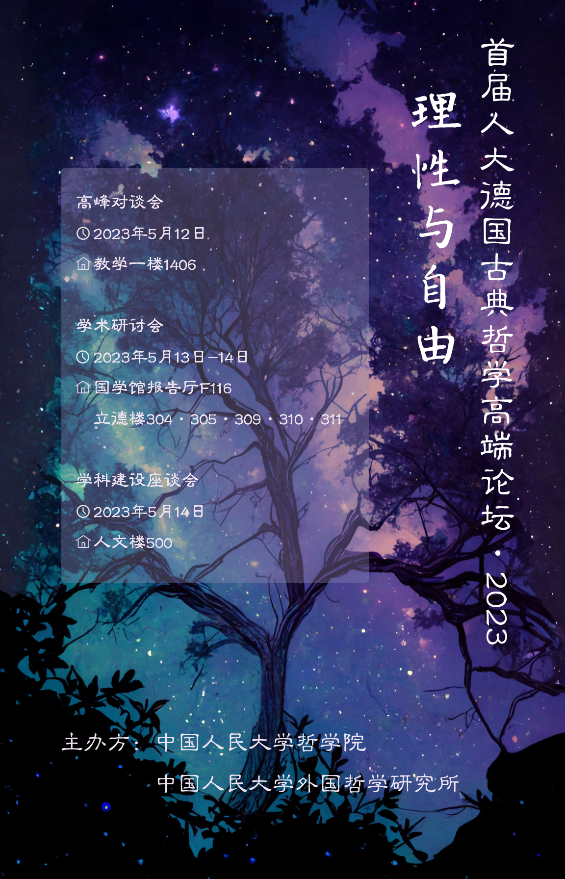 中国人民大学对德国古典哲学研究历来高度重视,在哲学学科发展史上,德国古典哲学研究硕果累累,是人大哲学人所共同珍视的学术资源和理论富矿。时维五月,历属孟夏,银河Galaxy 、中国人民大学外国哲学研究所拟于2023年5月12-14日举办“理性与自由——首届人大德国古典哲学高端论坛”。
