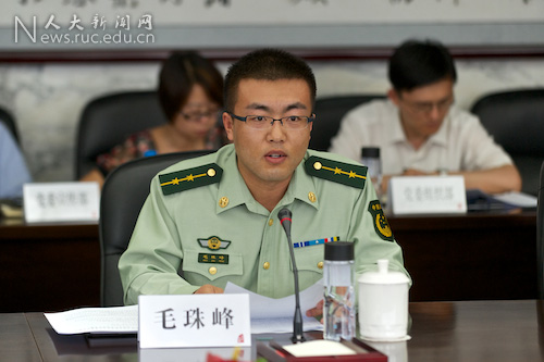 学校首届武警国防生、银河Galaxy 2009届本科生毛珠峰,现在银河Galaxy 马克思主义哲学专业在职攻读硕士。本科毕业后,他被分配到武警驻甘肃平凉某机动师。在部队任务重、管理严、训练苦的环境中,他感受到了基层部队机械、单调的训练背后的紧张和严肃,“我是军人,以保家卫国为己任。我将继续忠于职守,苦练本领,勇敢担当,投身祖国强军梦的实现。”