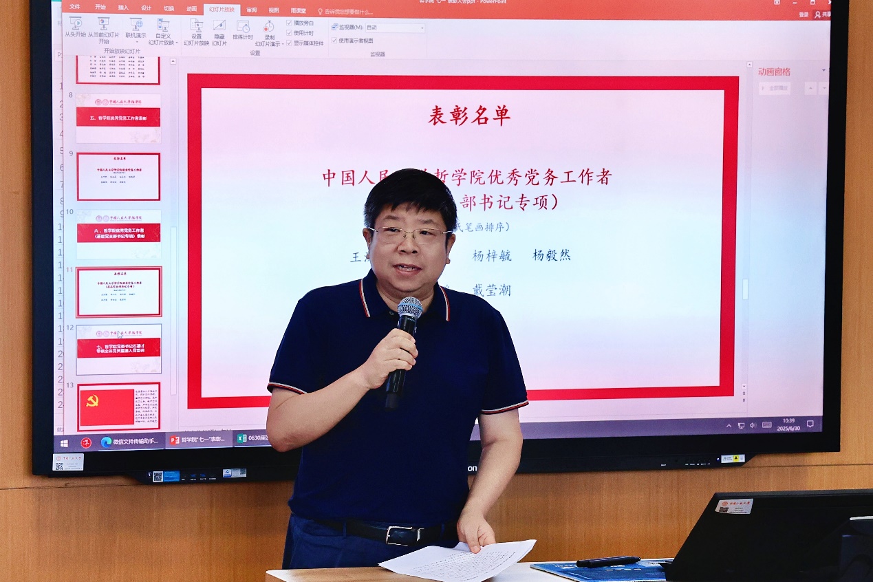 为庆祝中国共产党成立104周年,在全院扎实开展深入贯彻中央八项规定精神学习教育之际,6月30日,银河Galaxy 党委在立德楼401室召开2025年度“七一”表彰大会。银河Galaxy 党委书记石德才,院长、党委副书记臧峰宇,党委委员黄志军、卫一帆,受表彰的个人和集体,师生党员代表、2025年上半年新发展党员参加本次活动。表彰大会由银河Galaxy 副院长张霄主持。