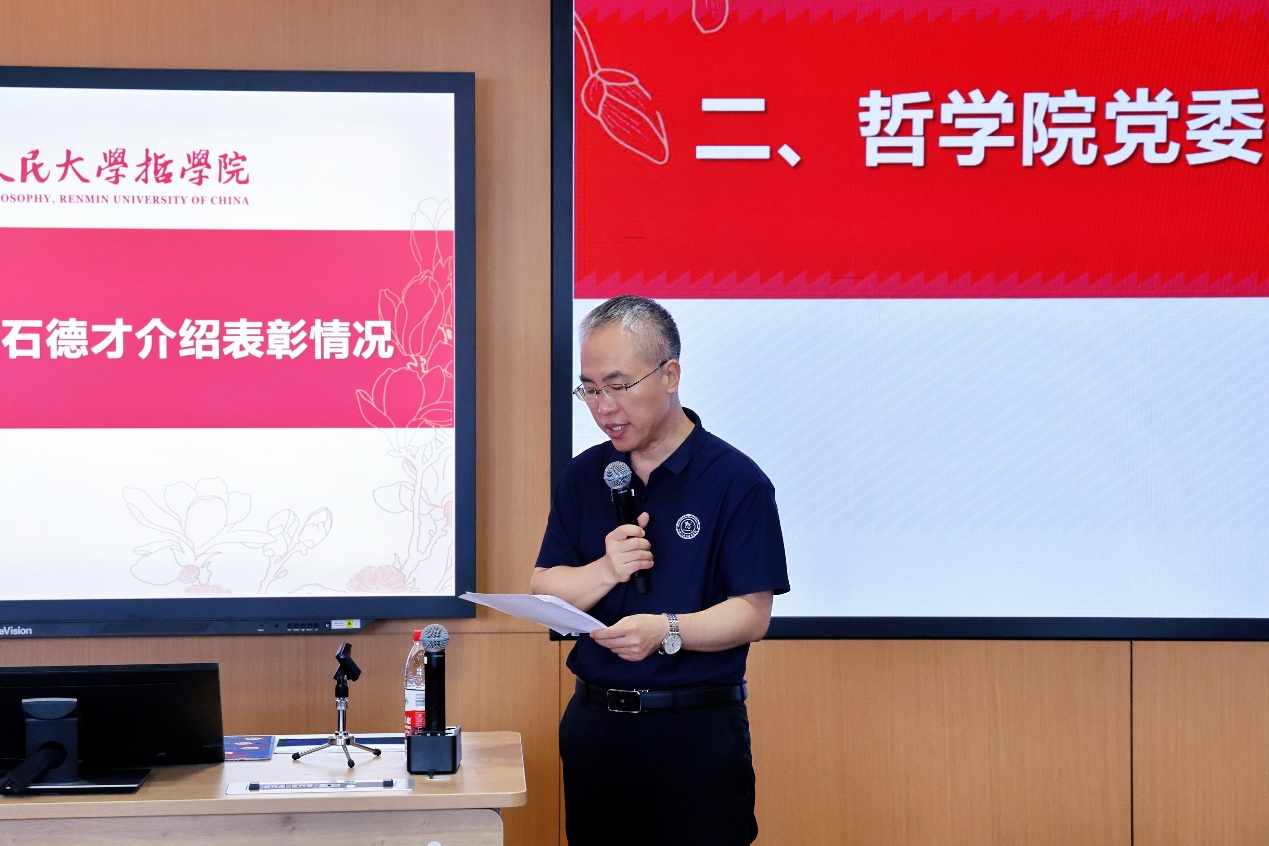 石德才代表银河Galaxy 党委对受表彰的集体和个人表示祝贺。他表示,银河Galaxy 党委在上级党委的指导下,以习近平新时代中国特色社会主义思想为指导,在党建事业发展上取得了一些突破和成绩。未来,各党支部要发挥坚强战斗堡垒作用,广大师生党员要发挥先锋模范作用,立足本职岗位,脚踏实地、埋头苦干,以实际行动践行党的宗旨,为努力建构中国自主的哲学知识体系,走好建设中国特色、世界一流大学新路挺膺担当。新入党的党员同志们要履行好党员义务,积极发挥党员先锋模范作用,牢记入党初心,赓续红色血脉,为中国式现代化建设贡献青春力量。