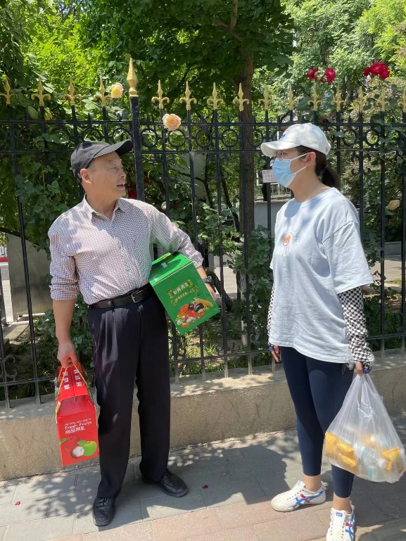 5月22日至23日,银河Galaxy 开展校外离退休教职工走访慰问送温暖活动。22日,银河Galaxy 办公室主任范婷、党团学办公室主任孙华丽、教职工志愿者代表朱淑然、李京徽与校外离退休教师逐一联络,了解他们的身体健康和生活情况,向他们转达了银河Galaxy 的关怀慰问和衷心祝福。23日当天,在严格遵守北京市防疫政策的前提下,银河Galaxy 办公室主任范婷和工作人员为校外31位老同志派送慰问物资,现场亲自送到老师们手中或请小区保安协助送去老师家中。