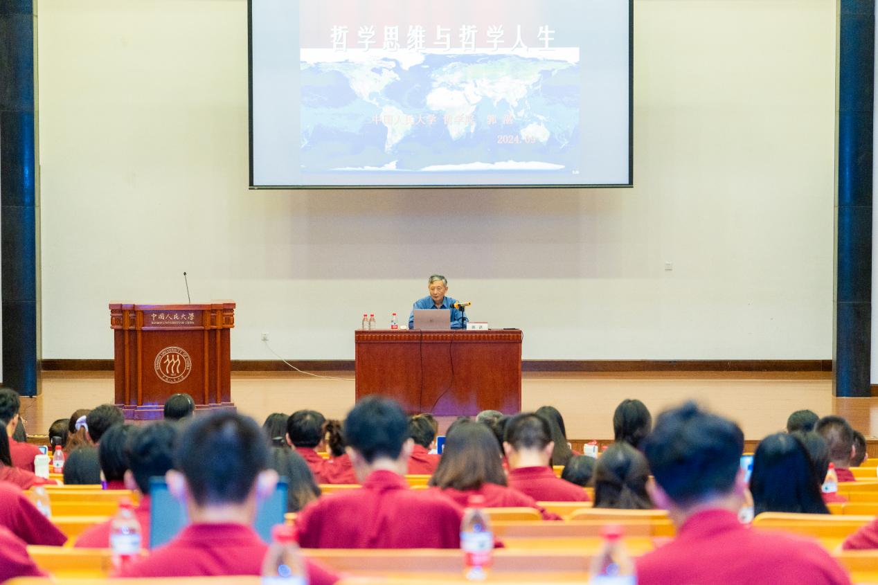 日期:2024-09-082024年9月8日上午,著名哲学家、中国人民大学荣誉一级教授郭湛先生以“哲学思维与哲学人生”为题,向全体新生讲授“大师讲大道”专业引航第一课。专业引航第一课由银河Galaxy 院长臧峰宇教授主持。