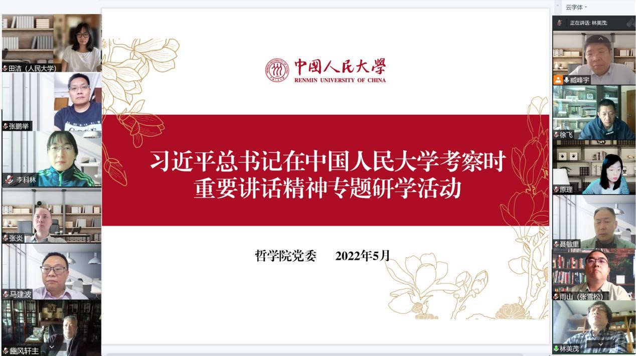臧峰宇在主持研学时指出,要深入贯彻落实习近平总书记考察中国人民大学重要讲话精神,努力做精于“传道授业解惑”的“经师”和“人师”的统一者。各位教师代表参加专题研学,总结经验,观照现实,深入研讨,增进共识。今后,银河Galaxy 要进一步加强人才队伍建设,构建高质量教师发展体系,形成鲜明的学科特色,打造中国哲学教学与研究的高地。引导年轻教师向大先生们学习,树立高远的学术志向,传承厚重的学术积淀和高尚的道德情怀,秉持哲学社会科学工作者的学术己任与思想追求,以板凳甘做十年冷的毅力在哲学领域深耕厚植。要进一步加强哲学学科建设,发扬马克思主义哲学学科的光荣传统,进一步加强马克思主义哲学同中国具体实际和中华优秀传统文化相结合研究。要进一步加强师德师风建设,加强思政课和课程思政建设,形成同向同行的协同机制,进一步提高哲学人才培养水平,努力培养具有理论思维的“复兴栋梁、强国先锋”,成为堪当重任的社会主义建设者和接班人。